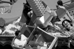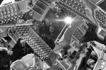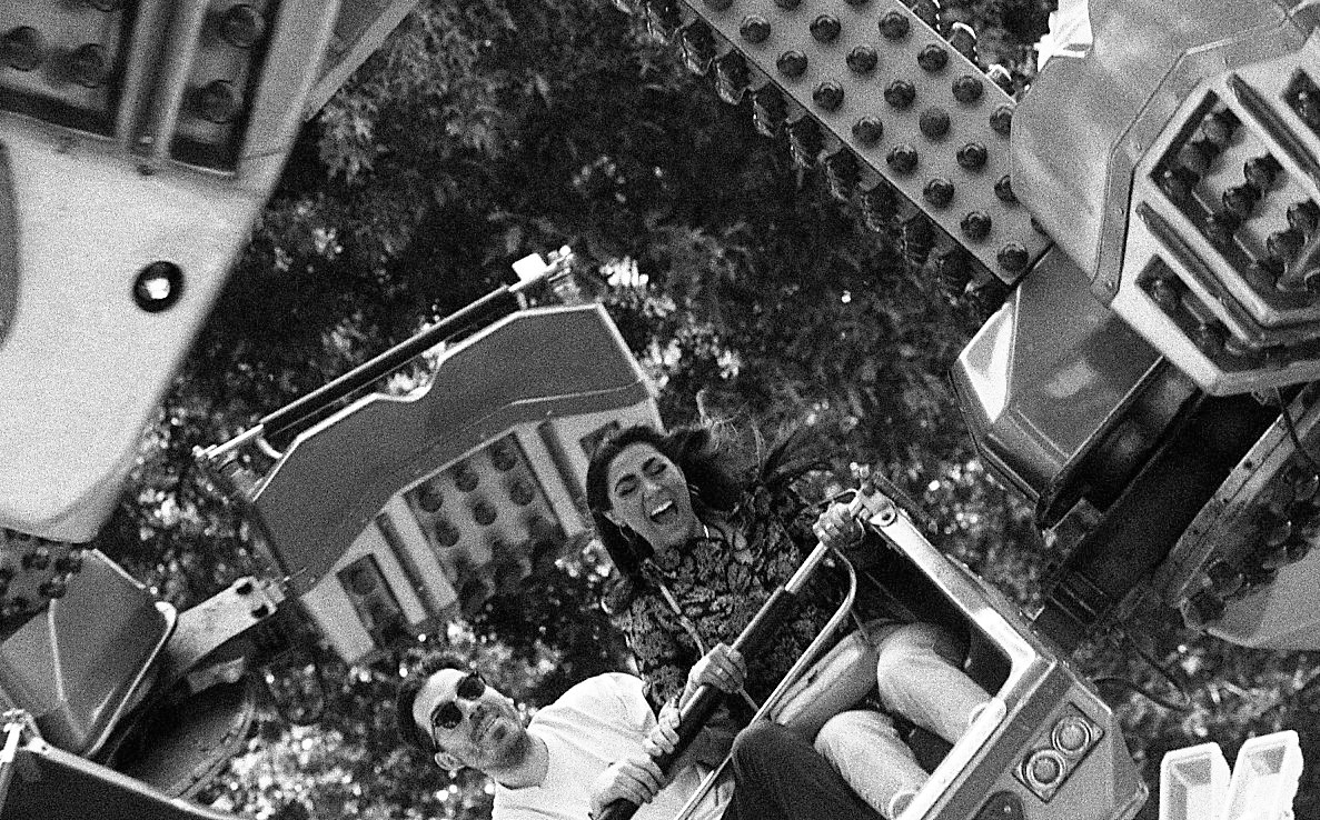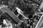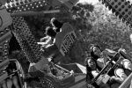 People arrive in such a way, doing all the right and necessary things, to have fun. The goings-on are chaotic but well structured. People gaze up at the mechanical stages, choose one they can brave, and patiently await their turns to embark on an alternate reality. And I meander while methodically plucking moments from a collective performance of the masses. The lines I see are sharp, unforgiving, and manufactured.